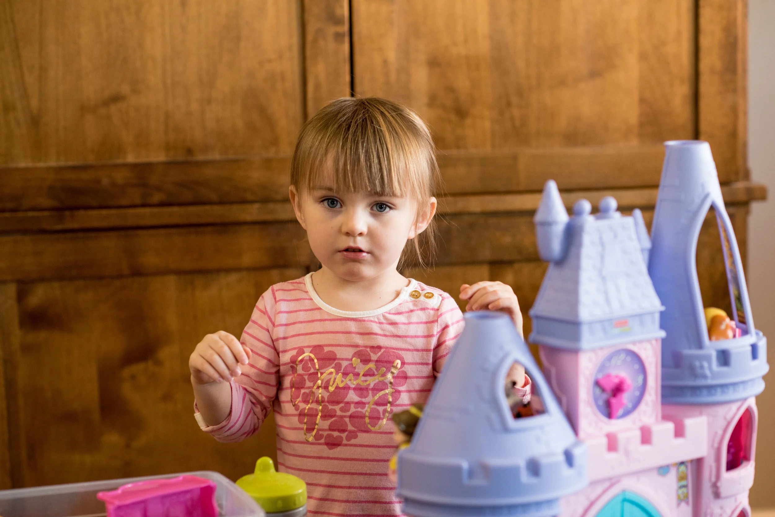 With both hands she grabs her large purple and pink princess castle. She goes back to the cabinet and pulls out the clear bin that holds the princesses and their furniture. She looks at me "mo" she says. I know she wants me to open it for her. "Open" I say as my hands make the open clap gesture. "Openn" she said. "Mia you said open!" I exclaimed! "Yes open, I will open it for you!" As if to say, yeah so what she just went right to picking out the princess she wanted. Maybe she could speak all along and just didn't want to.