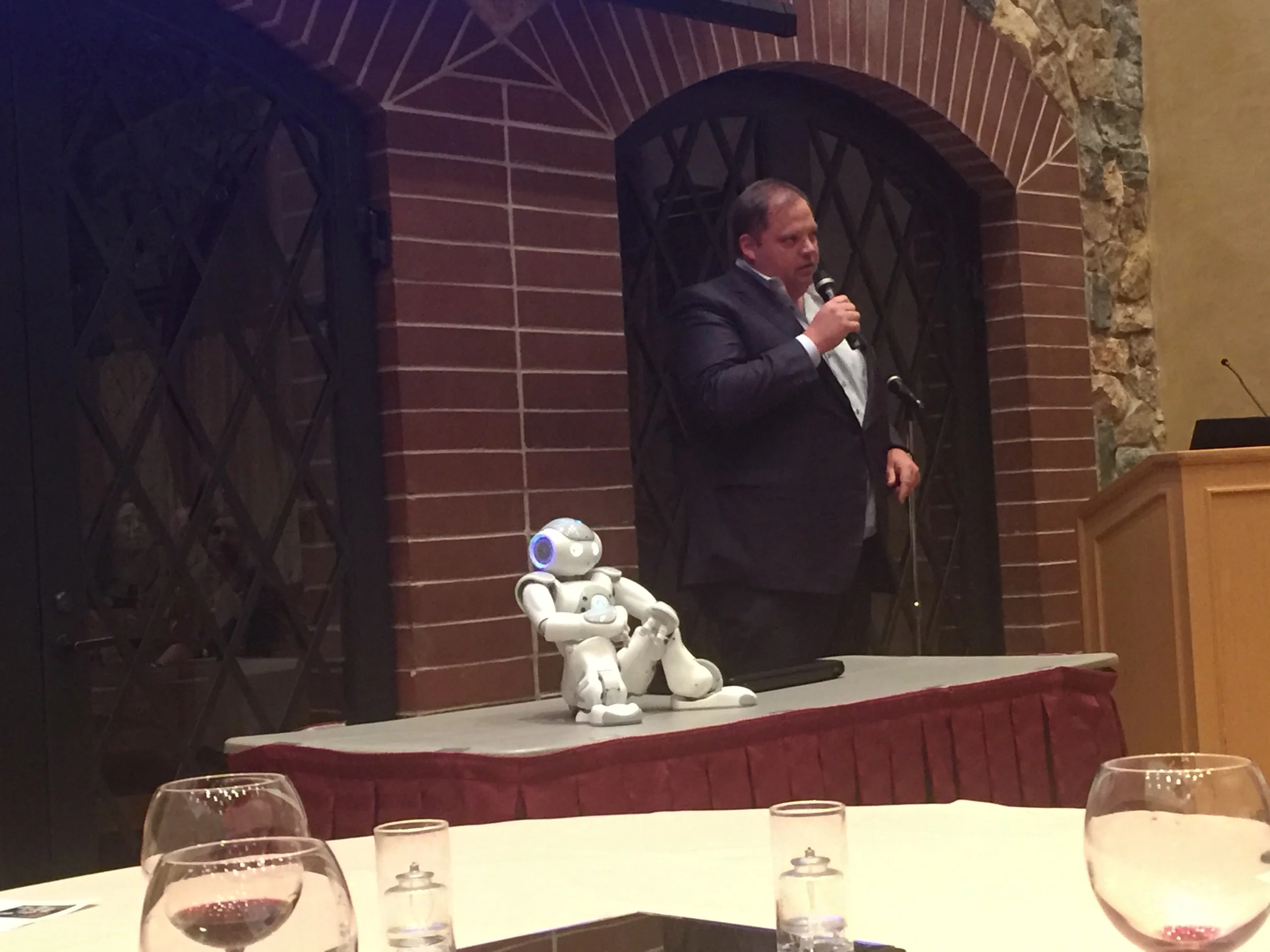 Last night, my sister Remy and I attended a fundraising event at the University of Denver. Dr. Mohammed Mahoor and a group of student researchers have been pairing Autistic children with a Robot Called NAO. NAO is about two feet tall. When it stands at its resting position, it slowly sways side to side. It features speakers on each side of its head that allow the robot to detect sound so it can look at people when they are talking. It blinks, speaks and dances. The robot is designed to teach children with Autism to pick up on social cues and emotions.