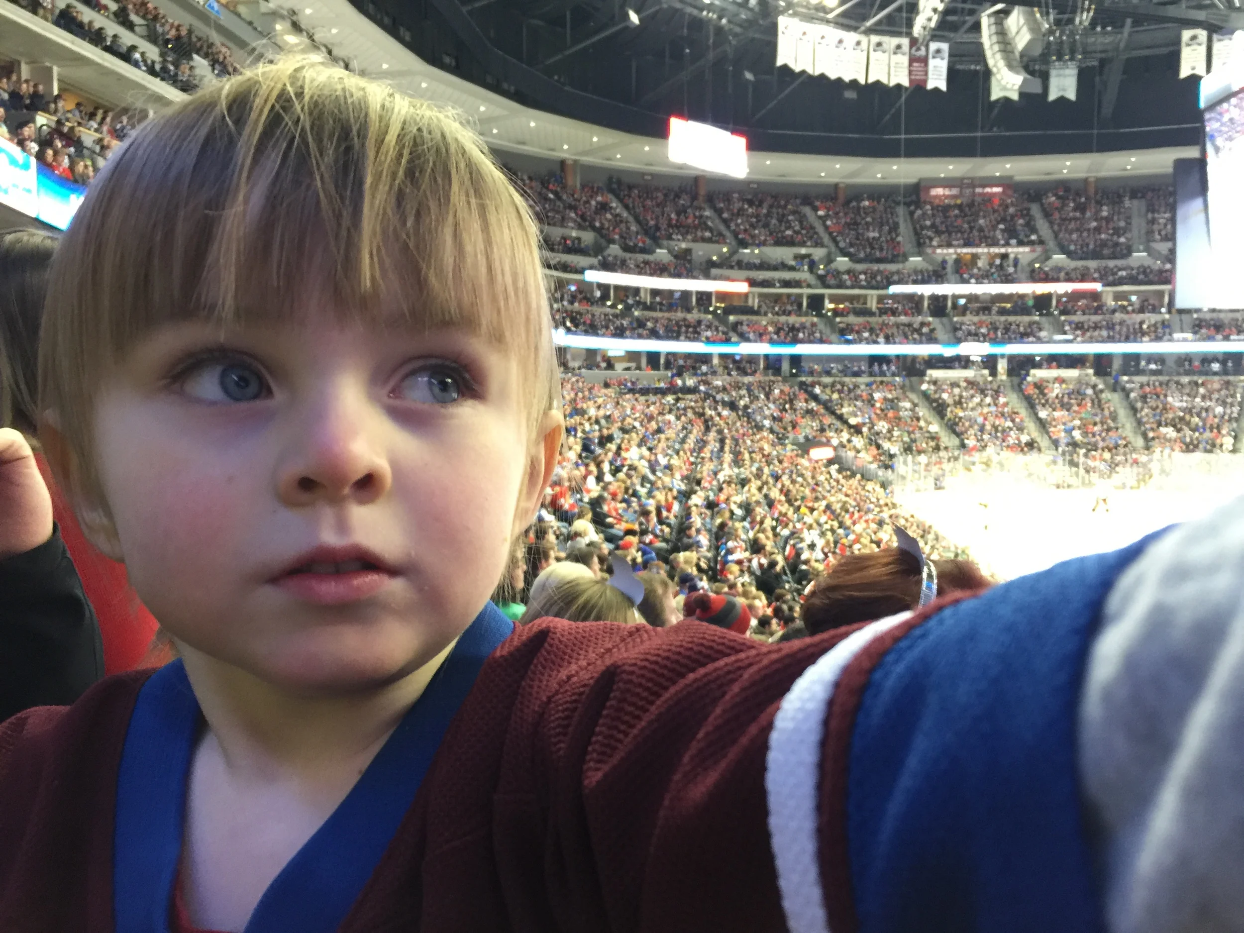 On New Year's Eve, we took ia to her first Colorado Avalanche Hockey game. We have taken her to Rockies games in the past. She typically eats fistfulls of popcorn for the first five innings, I take her to the outdoor playground at Coors Field and we leave before the game is over usually around the seventh inning stretch.