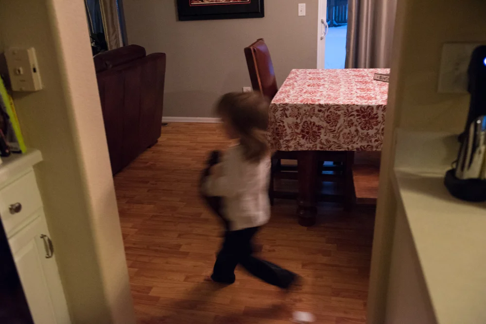 Mia and I got snowed in today. All of our appointments were cancelled and decided to skip our planned trip to the grocery store. We watched TV in bed for the better part of the day. Around 4 I made her dinner. While she was waiting for her soft pretzel to come out of the microwave she entertained herself by running circles around the dining room table. She huffed and puffed "aha ahaaha aha" breathlessly sprinting. I tried to catch her attention with the delicious meal I just made for her but she could not be diverted. That's my girl, she'll be on that Olympic podium for sure.