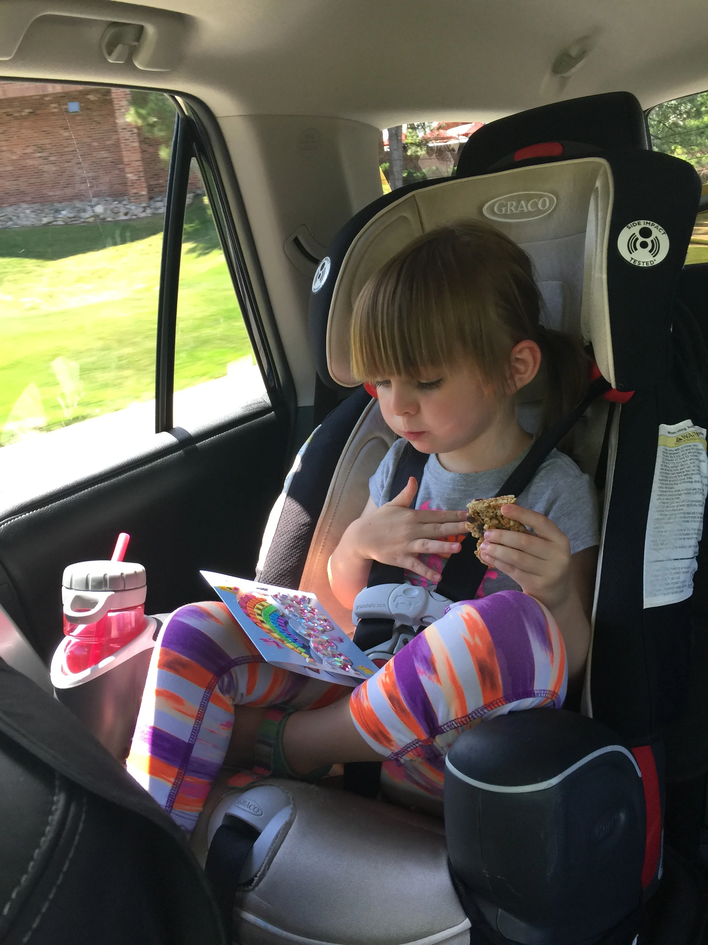 Vesper is a genuinely sweet girl. And really wants to have a relationship with her cousin. For the duration of our visit, she asked me over and over if Mia would like a sucker, or Mia would like to play with her stuffed animals. She decided she was going to make a card for Mia. She sat at the kitchen table and put together a greeting card with shiny stickers that made a rainbow. She gave it to us as we walked out the door. Mia looked at that card the entire car ride home. She loved it. I'm glad to know she has cousins that are on her side.